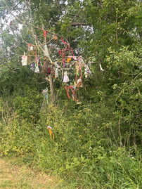 After breakfast, Sherry and I headed to our first stone circle: the Rollright Stones! This was my first ANCIENT sacred site!!! The Neolithic Era, Y'all! This is one of those places that I had no choice but to approach with humility and respect. It commanded it. I saw to the right of the stones a little tree with things hanging from it. I'm not 100% sure what they are, but they felt like prayers. (Ten years ago, I would have thought they were some kind of devil worship and avoided it. Thankfully, I can hold space for other beliefs, respect them, and enjoy their beauty). We were in quiet awe for a while, walked the circle, enjoyed the views of the meadows creating an incredible backdrop of this beauty. Then, we sat and did a little intuitive reading with the cards my bestie KT gave me for Christmas.